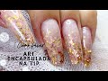 A incrível técnica que consiste em fazer um alongamento em fibra de vidro com uma Decoração entre as camadas do gel.